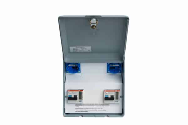 Tämä Satmatic latausasema sisältää molemmille autopaikoille supersuko pistorasian latausta varten, energian mittauksella. Jos haluat lataus ja lämmitys vaihtoehdon molemmille autopaikoille on M2913-44-502 sopiva piharasia malli.